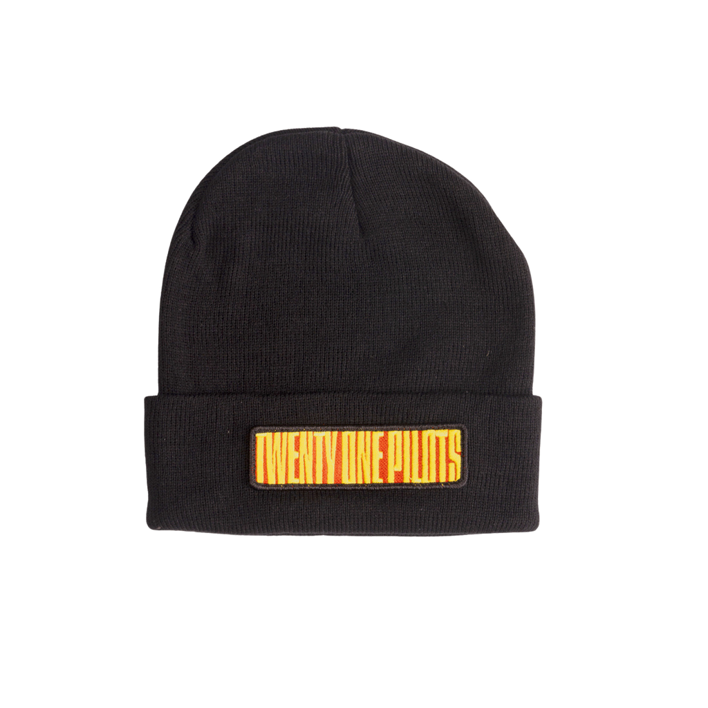 The Twenty One Pilots ‘Block Wordmark Beanie’ wordblock logo with a merrowed edge. One size.
