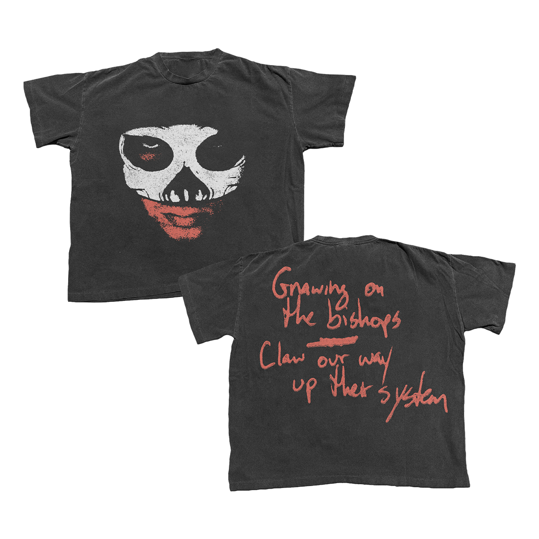 THE TWENTY ONE PILOTS ‘BLURRYFACE ANNIVERSARY DOUBT T-SHIRT’ FEATURES A PRINT ON THE FRONT AND BACK OF A UNISEX PREMIUM- QUALITY HEAVYWEIGHT, RELAXED FIT DARK GREY T-SHIRT. 100% RING SPUN COTTON.