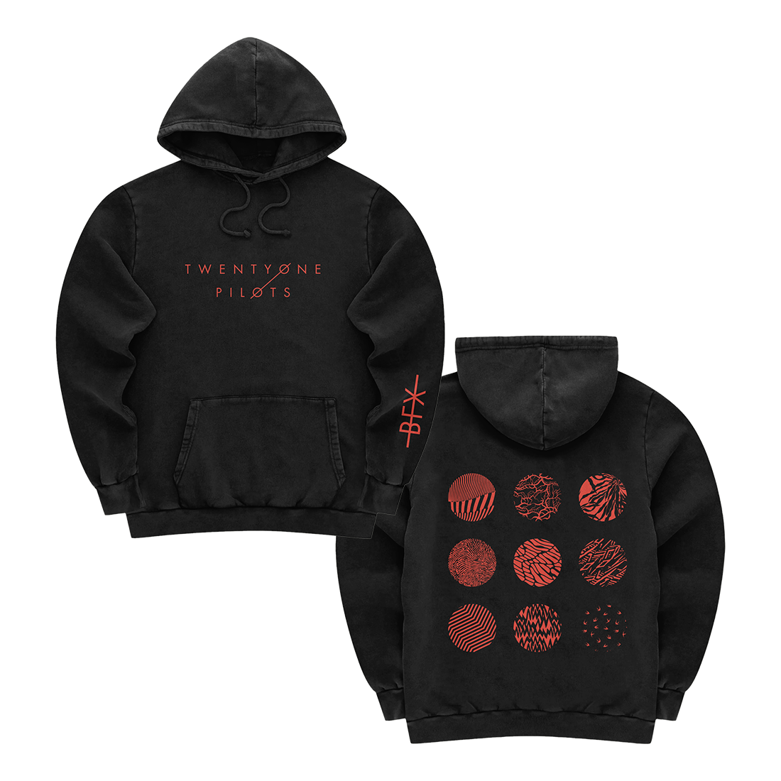 THE TWENTY ONE PILOTS ‘BLURRYFACE ANNIVERSARY HOODIE’ FEATURES A PRINT ON THE FRONT AND BACK OF A UNISEX BLACK HOODIE. 70/30 RING SPUN COTTON/POLYESTER.