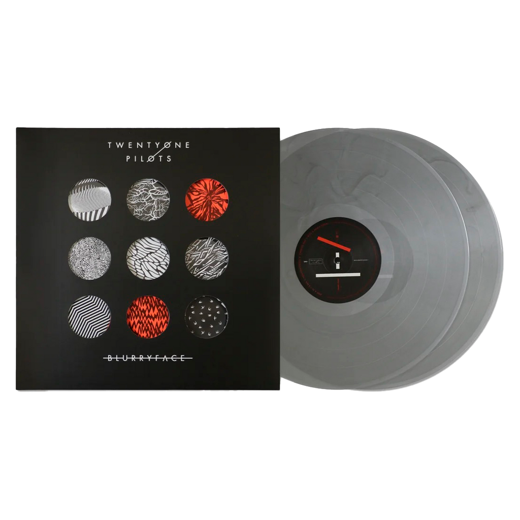 THE SILVER VINYL REISSUE OF TWENTY ONE PILOTS 'BLURRYFACE' LIMITED PRESSING. DOUBLE LP GATEFOLD VINYL WITH DIE-CUT ON COVER.