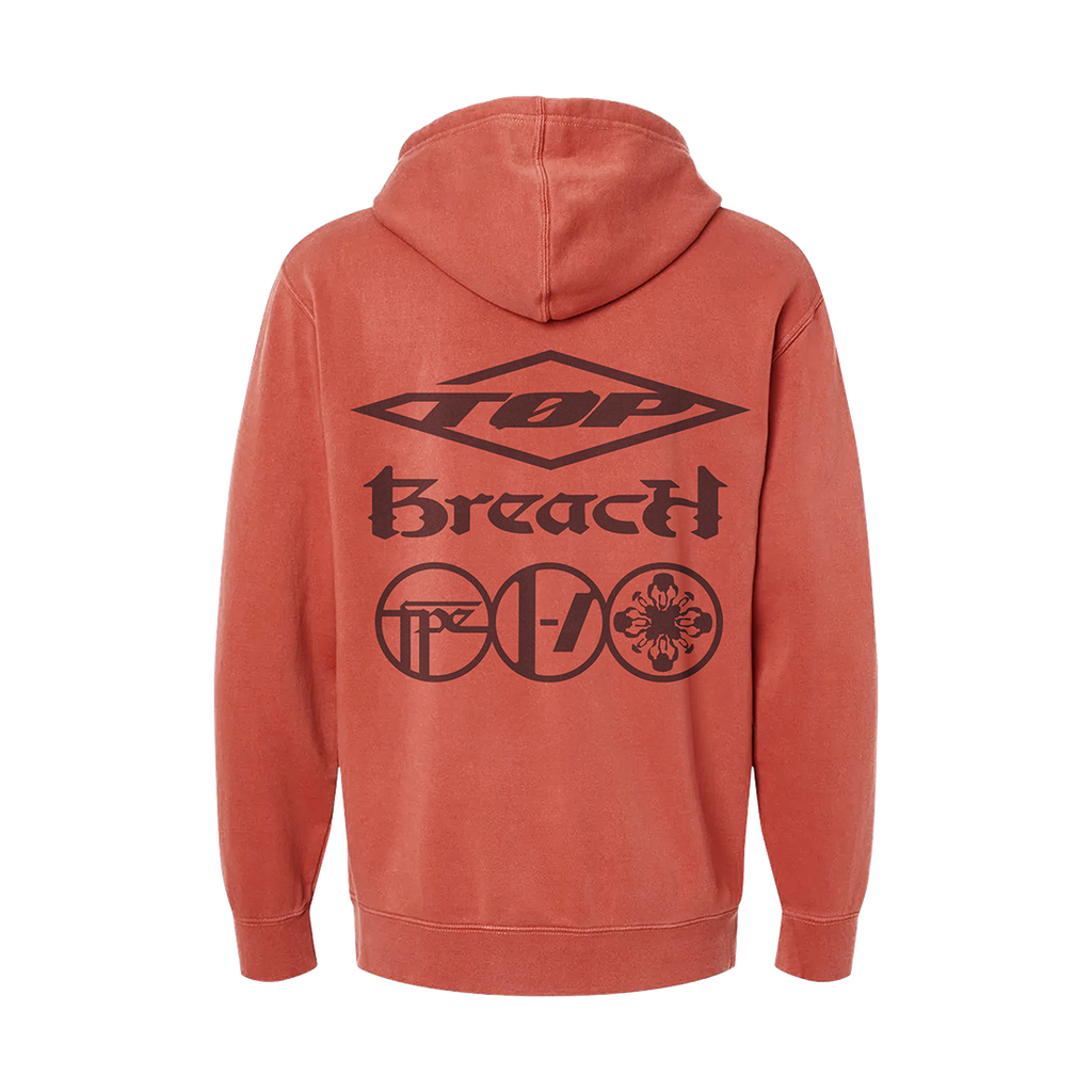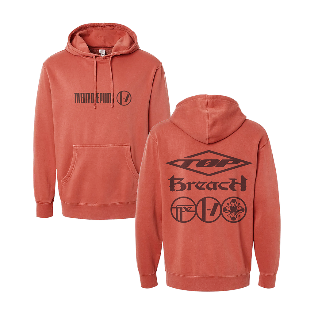 THE TWENTY ONE PILOTS ‘BREACH RED HOODIE’ FEATURES THE BAND LOGO ON THE FRONT AND "BREACH" ON THE BACK OF A UNISEX RED HOODIE. 70/30 RING SPUN COTTON/POLYESTER